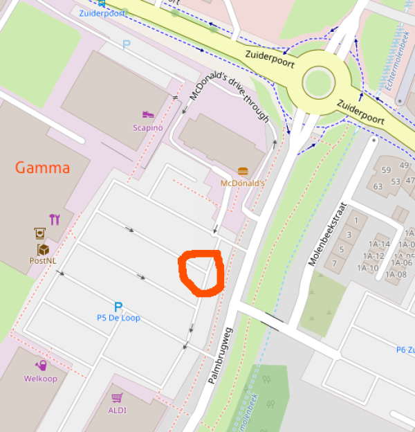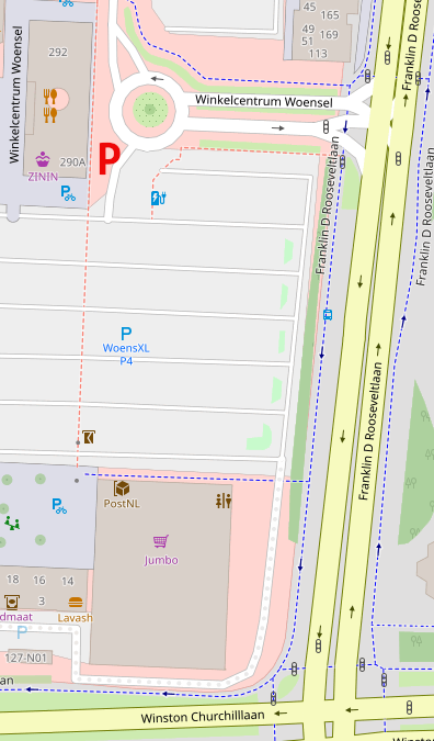 Op de parkeerplaats P4 bij P bij de Rotonde bij Winkelcentrum Woensel 290A.